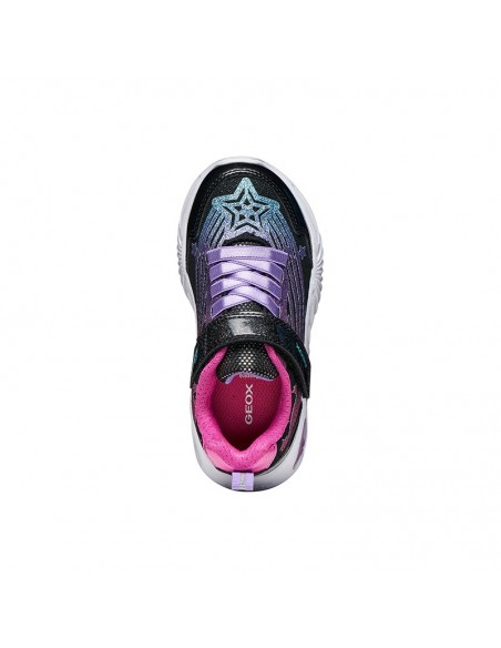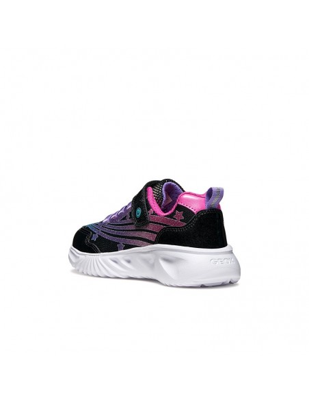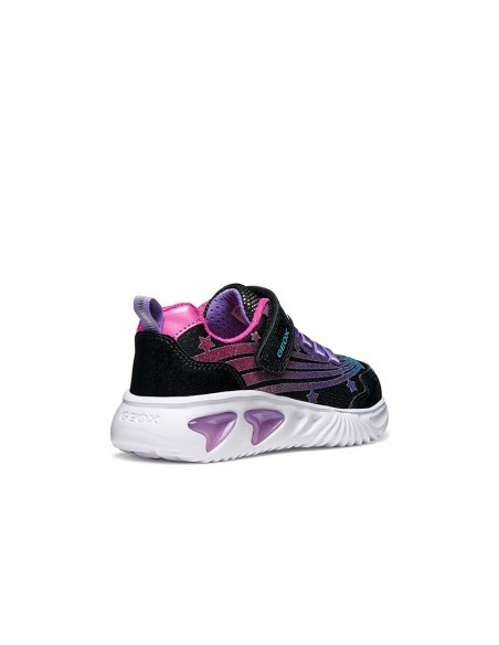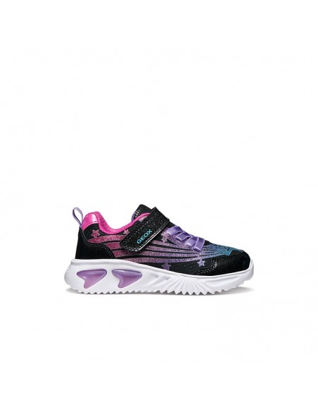 Baskets pour filles au design moderne et audacieux, conçues pour apporter confort et style au quotidien. Cette version arbore une tige en tissu brillant, cuir verni et cuir nacré à la brillance douce, déclinée dans un coloris noir et rose fuchsia accrocheur. Dotées de lumières intégrées à la semelle, les chaussures Assister illumineront votre journée et dynamiseront vos looks avec une touche d'énergie et de personnalité.
