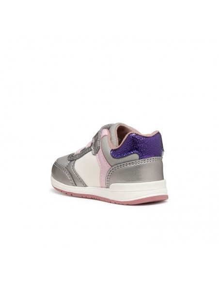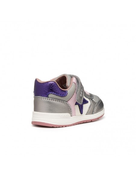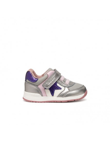 Baskets premiers pas pour bébé fille, à la structure souple et stable, conçues pour accompagner les tout-petits dans leur apprentissage de la motricité. Cette version de Rishon arbore une tige en cuir nacré et tissu brillant aux coloris argent foncé et violet, et se ferme grâce à une fermeture sécurisée pratique. Rishon est la solution idéale pour les petites aventurières du quotidien, offrant aux enfants soutien et liberté de mouvement pour explorer le monde.
