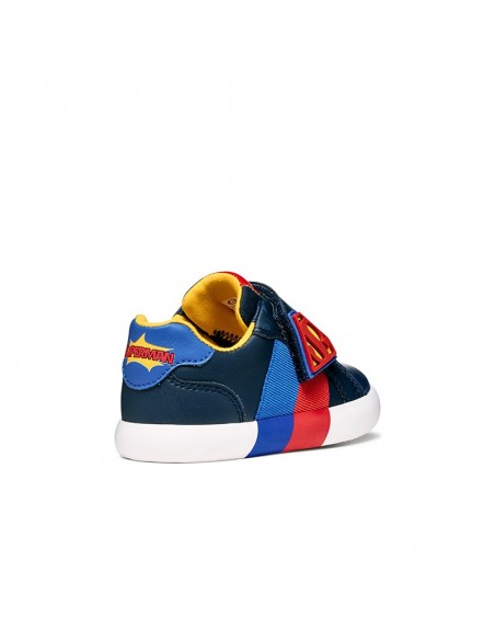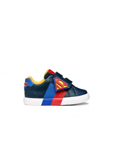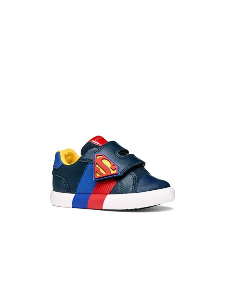 Les Gisli sont des sneakers pour bébé garçon nées de la collaboration entre Geox et Warner Bros. Réalisées en toile et matière à effet cuir, ces chaussures sont rehaussées par des applications dédiées à Superman et sont parfaites pour compléter les looks décontractés de votre enfant et l'accompagner dans ses aventures quotidiennes.